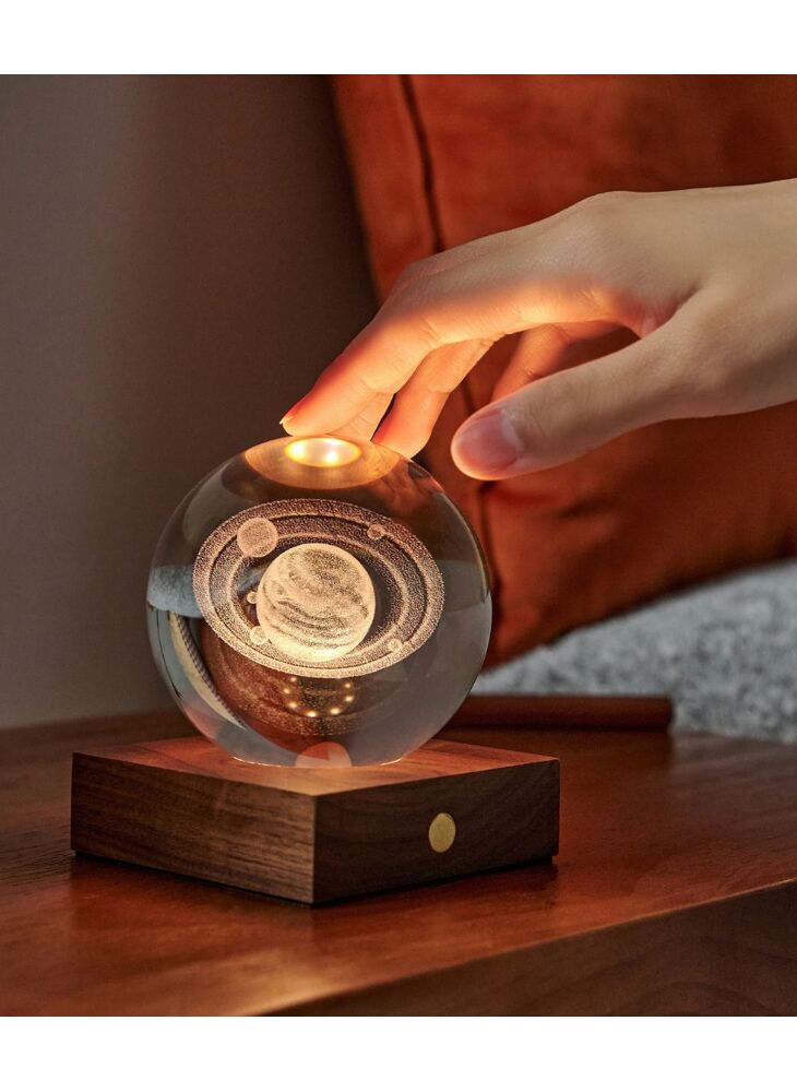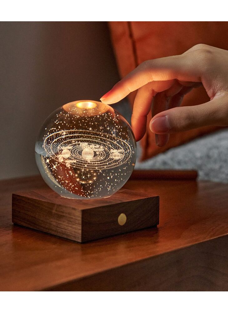 De betoverende kristallen lichtballen van Amber Crystal Light brengen een vleugje magie en verwondering in huis. Steek de lamp aan en kijk hoe de prachtige 3D-lasergravures tot leven komen en je ruimte in een gouden gloed hullen.
