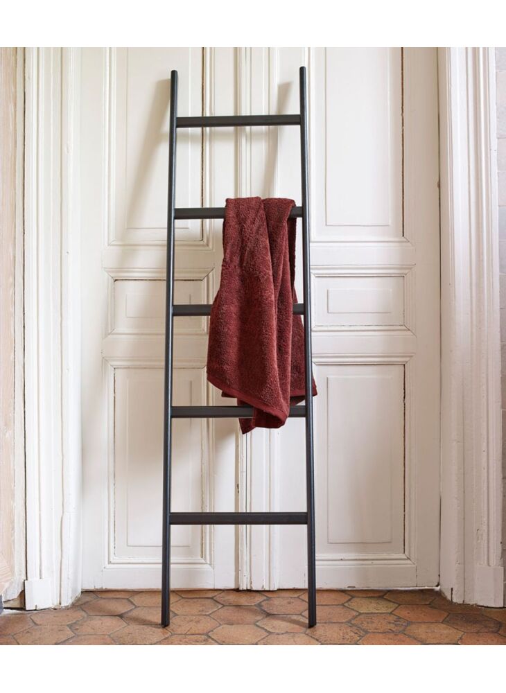 Deze handgemaakte ladder uit eikenhout is een leuk alternatief voor een klassiek handdoekrek en kan je ook als decoratie gebruiken.