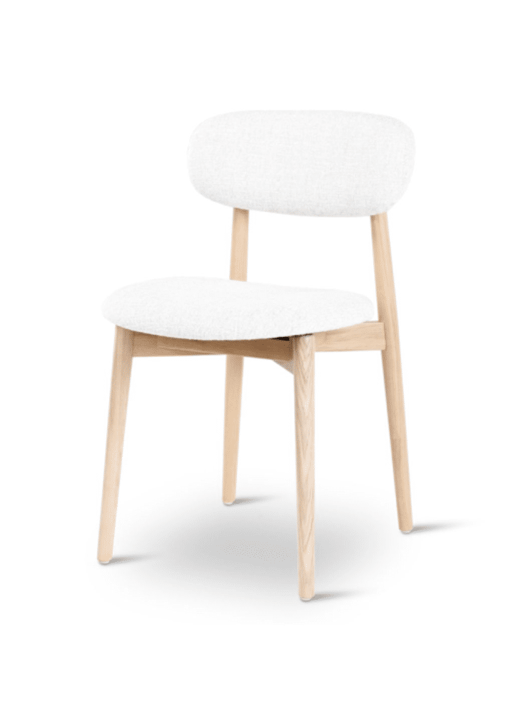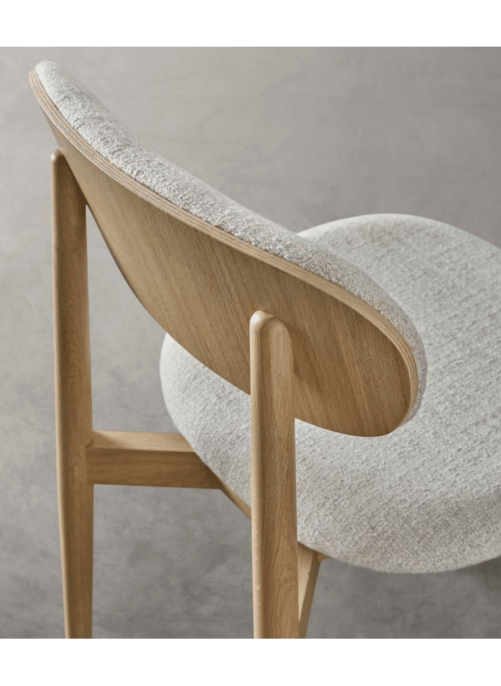 Deze elegante eetkamerstoel straalt klasse uit, met een zachte bekleding, gestroomlijnde vorm en houten rugleuning die een speels vintage accent toevoegt. Tijdloos comfort dat nooit verveelt.