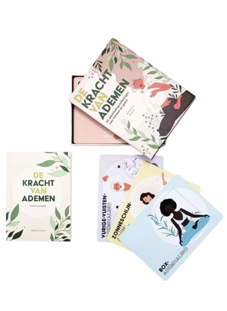 Deze prachtige kaartenset biedt maar liefst 50 ademhalingsoefeningen, variërend van dynamische, verkwikkende technieken tot kalmerende, meditatieve oefeningen. De kaarten zijn handig onderverdeeld in vijf categorieën: focussen, ontspannen, stimuleren, loslaten en verbinden. In het bijgeleverde boekje vind je gedetailleerde achtergrondinformatie over elke ademhalingsoefening, de voordelen ervan en het ideale moment om ze toe te passen. Of het nu ochtend, middag of avond is, of je nu behoefte hebt aan concentratie of ontspanning, er is altijd een passende ademhalingsoefening voor elke gemoedstoestand. Ontdek de manieren waarop ademwerk je kan helpen met 'De kracht van ademen'.