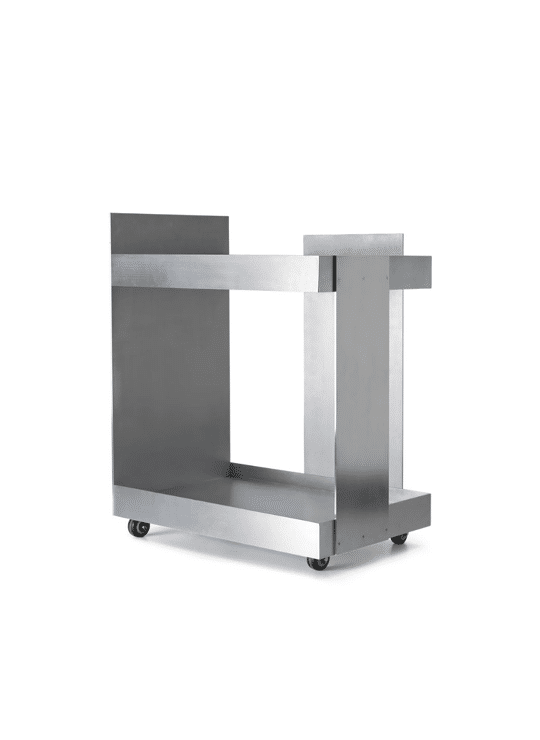 Deze sculpturale trolley is tegelijk een visueel opvallend object en een functionele toevoeging aan je interieur.