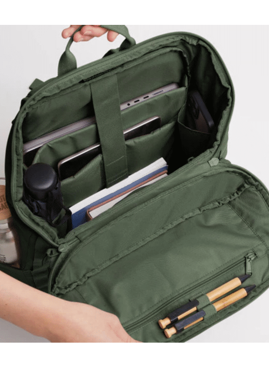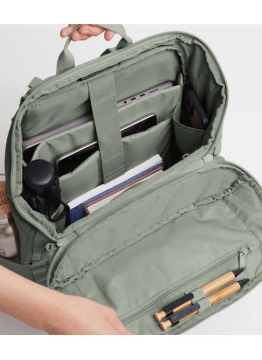Met flexibele zijvakken in mesh (ideaal voor je waterfles) en verschillende binnencompartimenten zorgt deze professionele metgezel ervoor dat je altijd perfect georganiseerd bent. Een kabeldoorvoer voor je elektronische apparaten, een verborgen achtervak, een sleutelhanger en een bagageriem, een verstelbare borstriem, ergonomische schouderbanden… Deze topper uit waterafstotend gerecycleerd oceaanplastic is overal op voorzien.