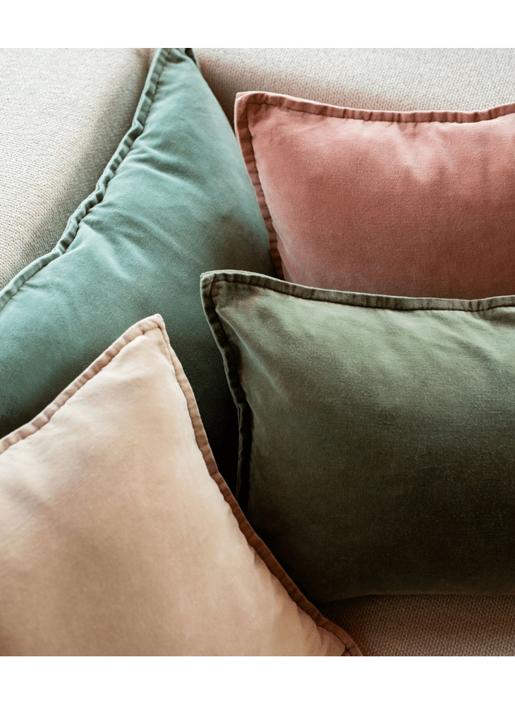 Kussens in warme tinten en luxueus katoenfluweel. Voor een vleugje zachtheid in huis.