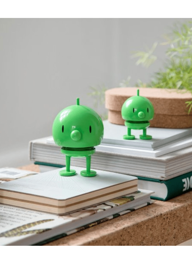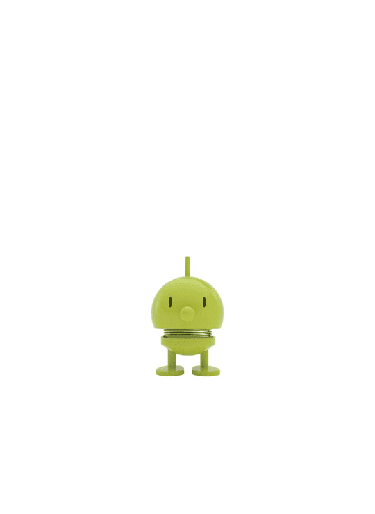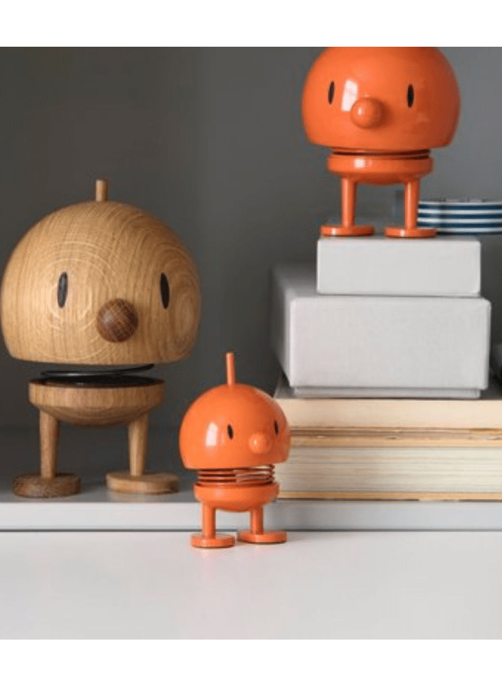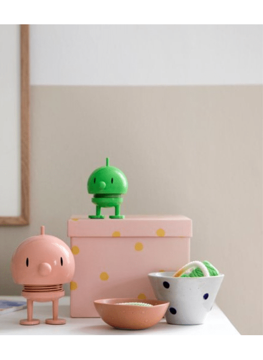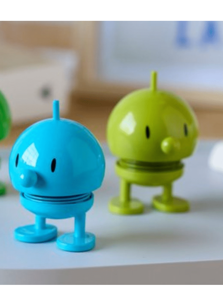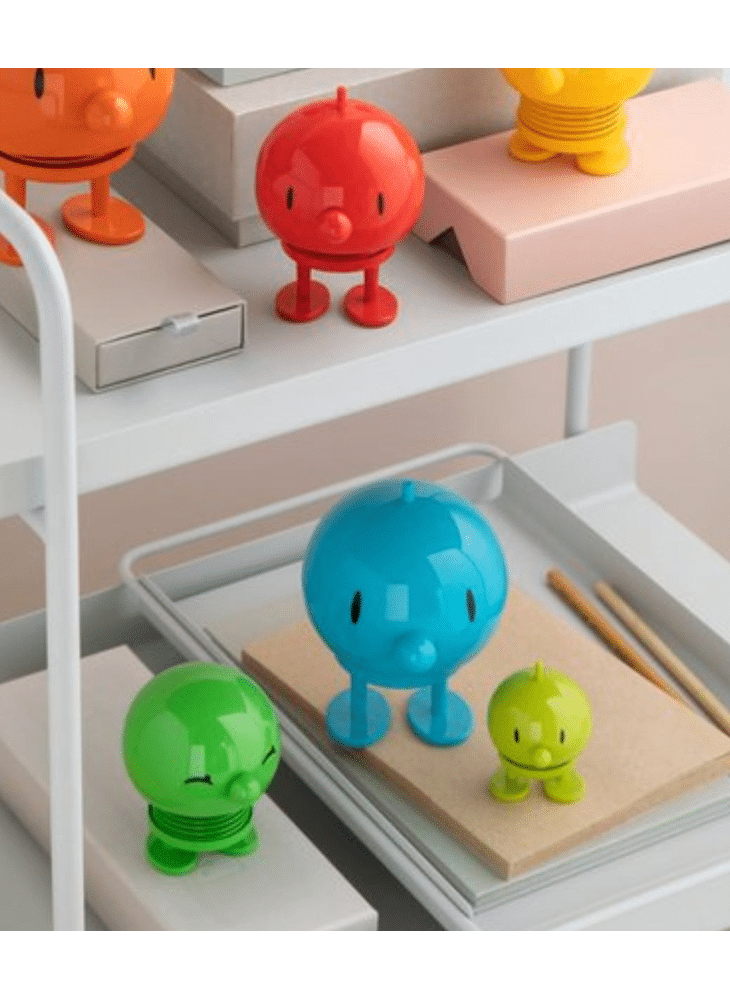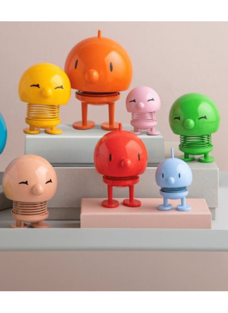 Door een zachte duw begint hij, dankzij een stalen veer, vrolijk te wiebelen.