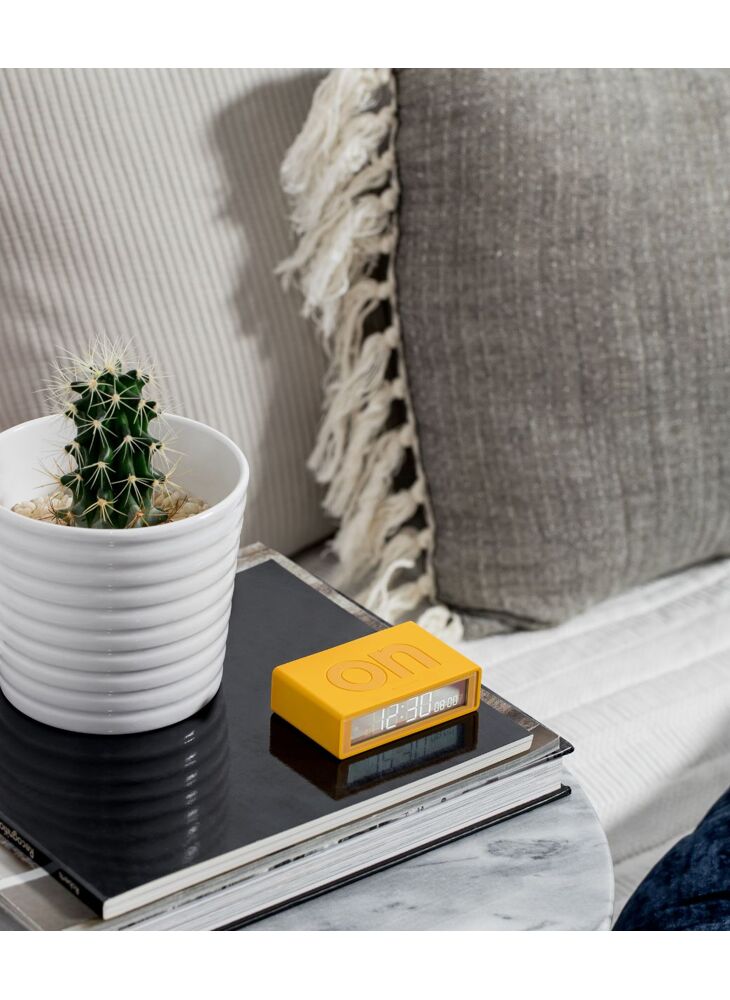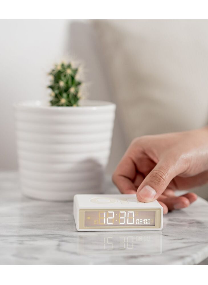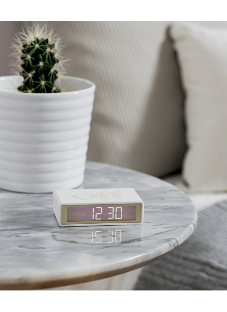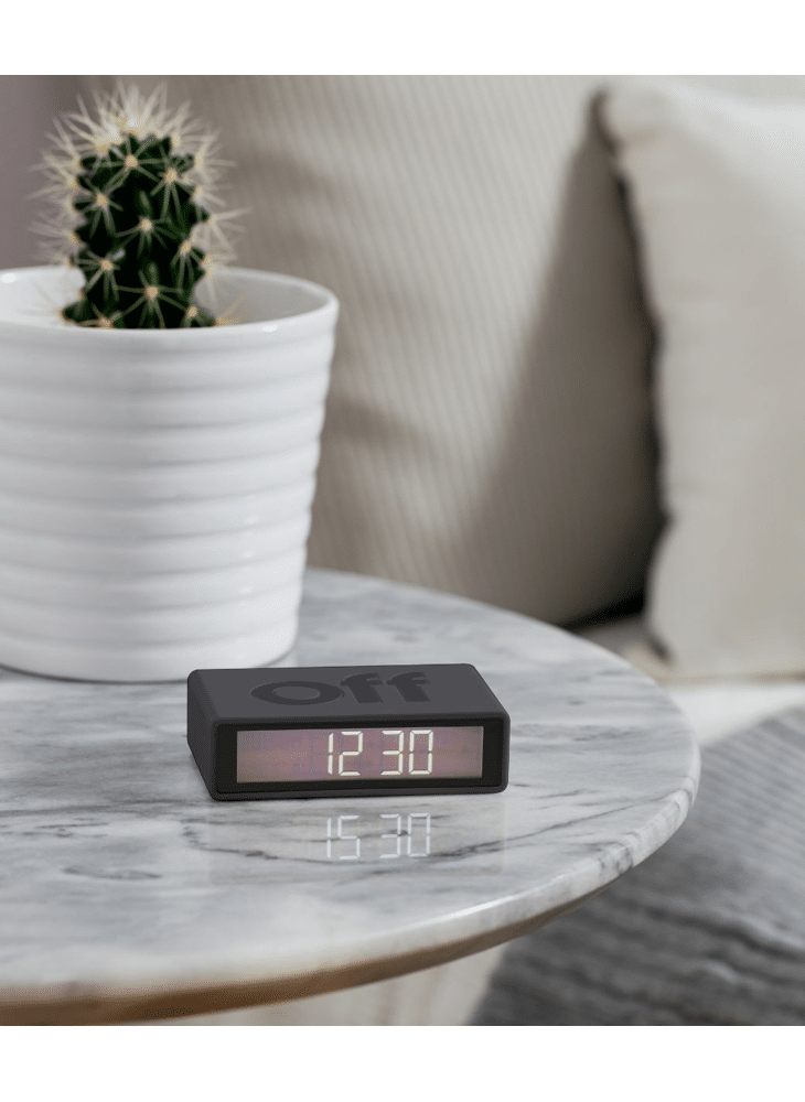 Gedaan met tasten in het donker op zoek naar de schakelaar van je wekker. Het alarm van deze funky flipklok zet je aan/uit door de klok om te draaien. En als je je hand over de aanraaksensor beweegt, breng je de display tot leven. Opstaan was nog nooit zo makkelijk.