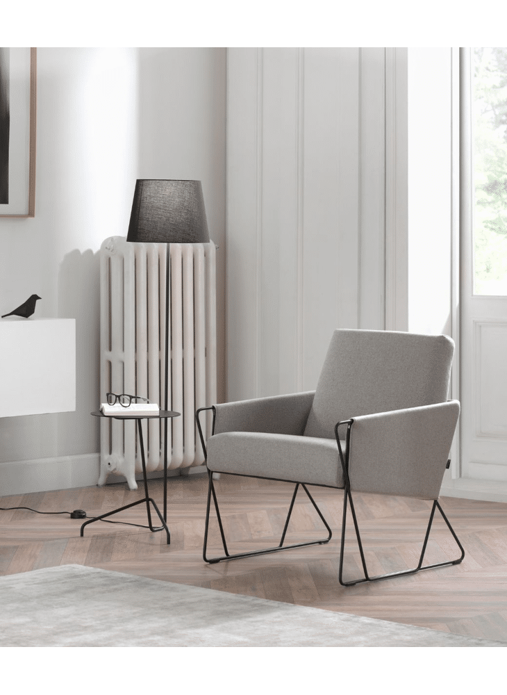 Dit knappe ontwerp van Karlien Imants brengt een eigentijdse stijl in elk interieur. De strakke lijnen van het stalen frame contrasteren mooi met de zachte kussens.