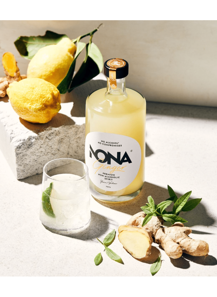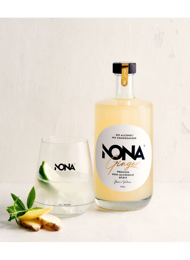 NONA Ginger is de eerste alcoholvrije spirit op basis van gember. Een evenwichtige mix van 12 gedistilleerde kruiden met verfrissende citrustoetsen en een pittige afdronk. Deze nieuwe creatie van NONA is samengesteld met biologische gember, yuzu, verbena en kurkuma. Puur ontwikkeld uit hoogwaardige, 100% natuurlijke ingrediënten.