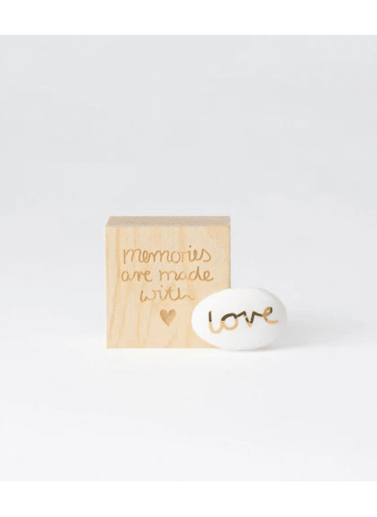 Geef een beetje liefde aan iemand die je na staat of die wel wat extra's kan gebruiken. Dit lieve keine ovalen steentje van Räder is gemaakt van geglazuurd porselein en heeft de goudkleurige tekst 'love'. Het steentje wordt geleverd in een houten doosje met gegraveerde opdruk 'Memories are made with love'