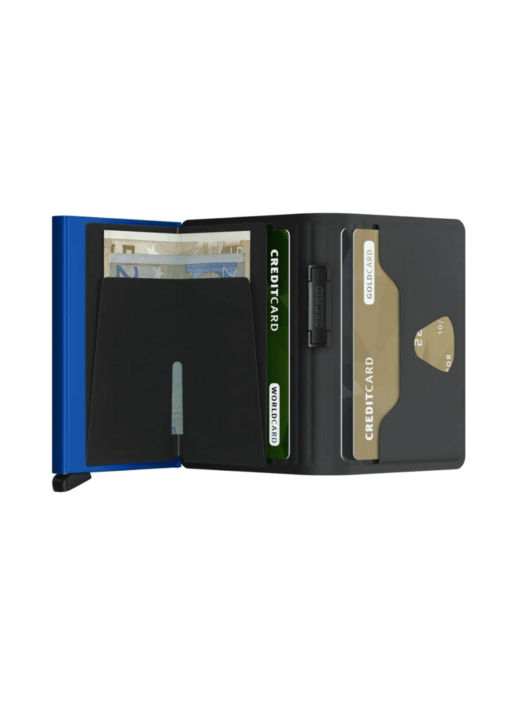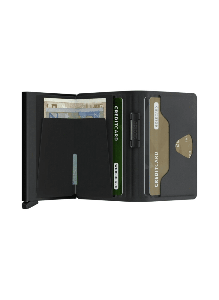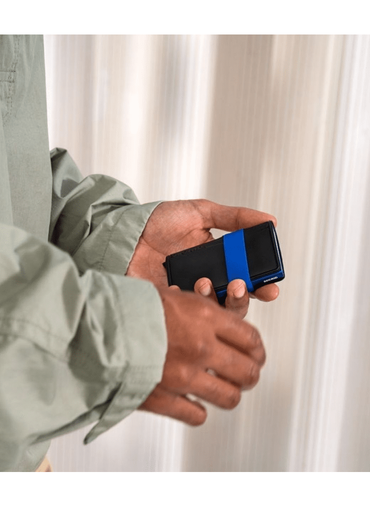 De aluminium Cardprotector maakt het mogelijk om de kaarten met één simpele beweging uit te schuiven en ze te beschermen tegen buigen, breken en ongewenste draadloze communicatie (RFID-safe).
