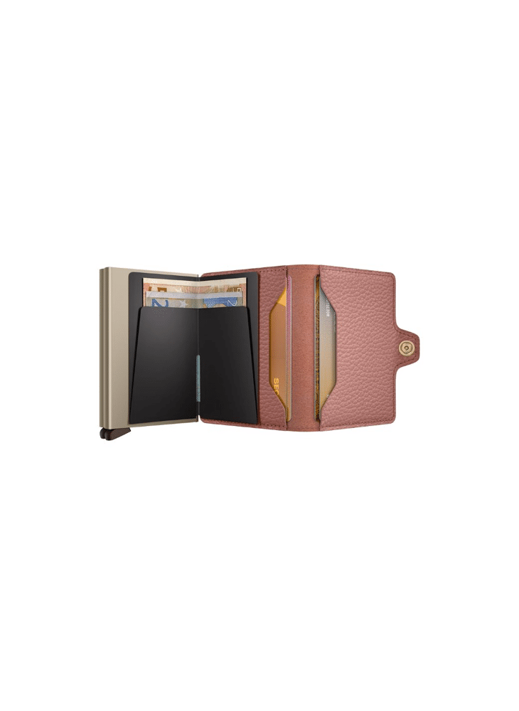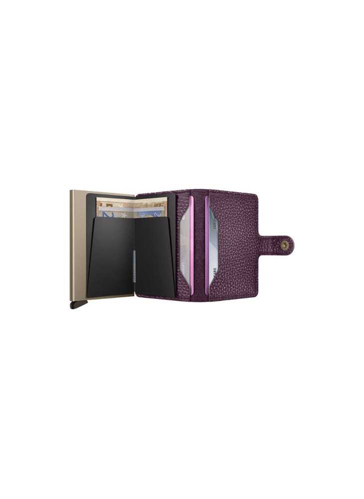 Klein van formaat en verrassend groot in opslagcapaciteit, de Miniwallet combineert het beste van twee werelden. De buitenkant bevat bankbiljetten, bonnetjes en pasjes, terwijl je met de aluminium Cardprotector met één simpele beweging bankkaarten eruit kunt schuiven en ze beschermt tegen buigen, breken en ongewenste draadloze communicatie.