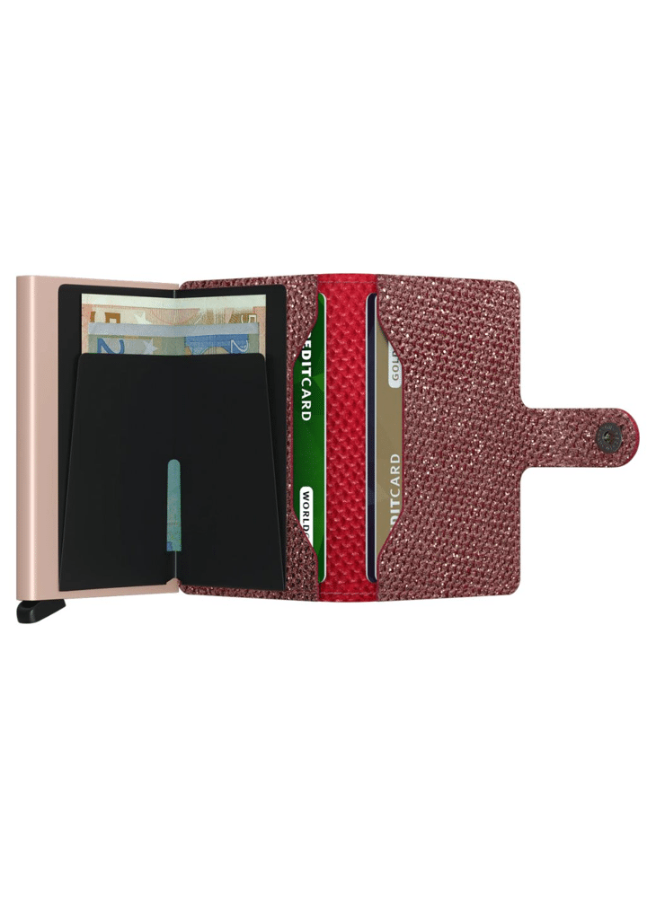 Deze stijlvolle Secrid wallet houdt identiteitskaart, betaalkaarten en andere essentials netjes bij elkaar. Met zijn leer met subtiel glinsterende afwerking is het een elegante maar veelzijdige optie voor dagelijks gebruik.