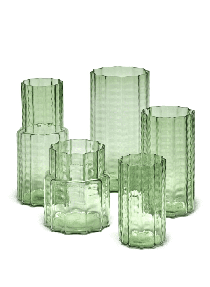 Wave is een collectie mondgeblazen vazen gebaseerd op de grote glaspartijen van het MAS. Deze glaspartijen zijn in Ruben Deriemaekers ogen een subliem staaltje kunst en belichamen als geen ander de schoonheid van het materiaal en de oneindige toepassing hiervan. Door de uitgesproken vorm en textuur/structuur koos hij voor een eerlijke, subtiele kleur: een zeer licht groen. Op die manier blijven de vorm en het materiaal primeren.