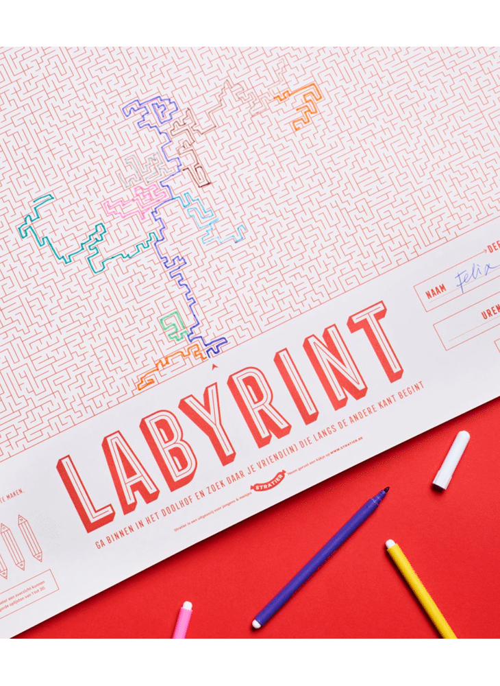 Stap in het mega-labyrint en ga op zoek naar je vriend(in) die langs de andere kant begint. Of daag de ander uit voor een Labyrint-race. Vind jij als eerste de uitgang?