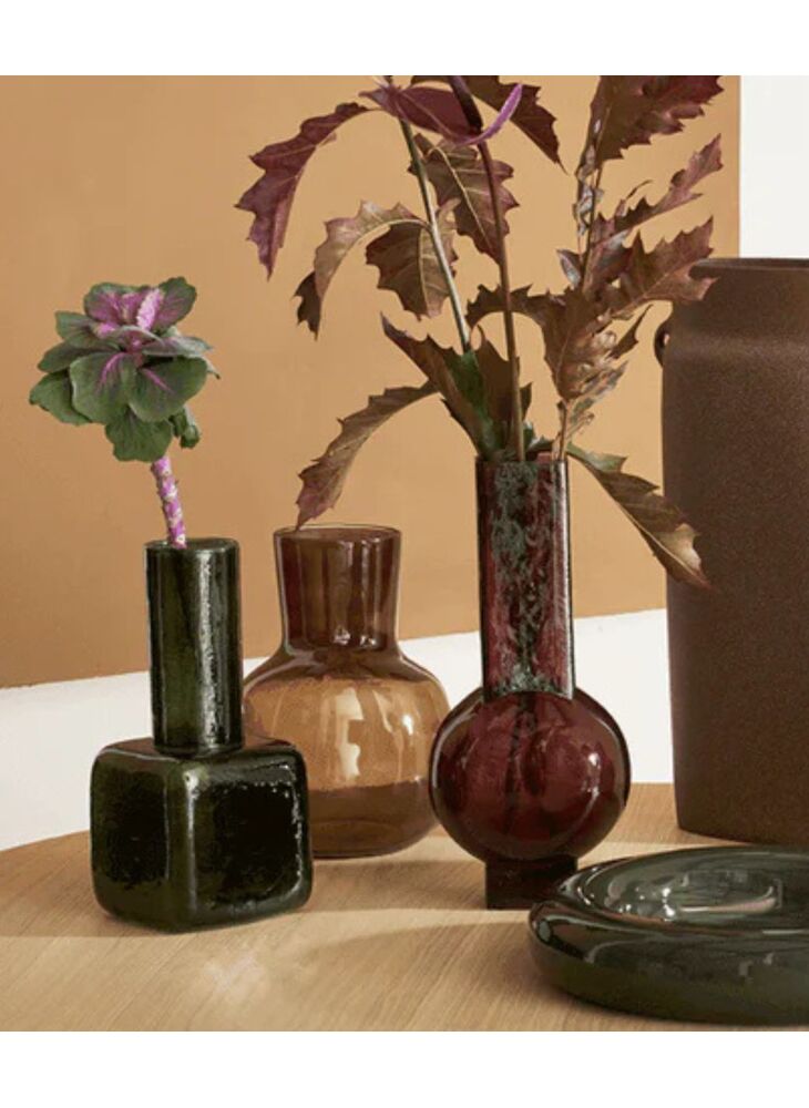 Gevormd uit gerecycled glas, met tinten die dansen in het licht, brengt deze vaas sfeer en warmte in je interieur.