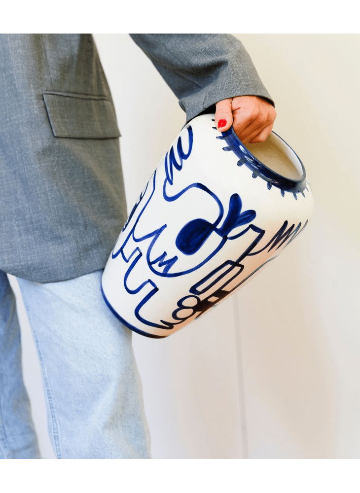 Prachtige met de hand beschildere vaas uit keremiek van Val Pottery in samenwerking met Julie Loeckx, gekend voor haar grafische ontwerpen boordevol kleur. Een echt collectors item boordevol karakter, zorgvuldig verpakt in een stijlvolle geschenkdoos.