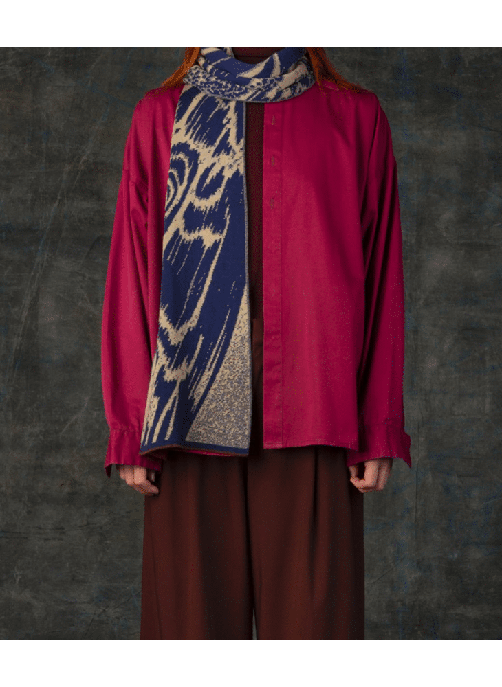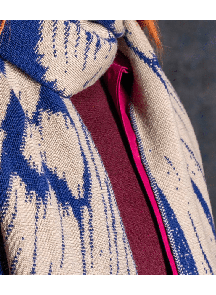 Prachtige jacquardgebreide sjaal in 100% extra fijne merinowol, gemaakt in België. Het nachtvlinder-inspiratieontwerp is aan beide zijden zichtbaar, zodat je hem op twee manieren kan dragen. Het praktische MIDI-formaat is nooit te groot of te klein. Wikkel hem één keer om je nek voor een relaxte look of dubbel voor extra gezelligheid. Een topfavoriet bij vrouwen, mannen én tieners.