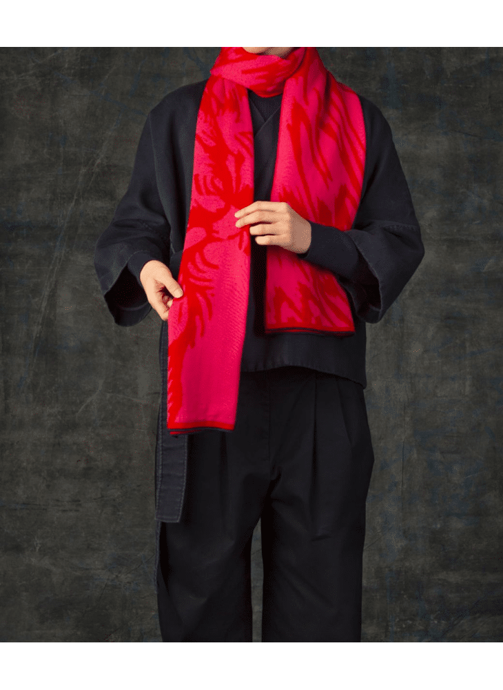 Prachtige jacquardgebreide sjaal in 100% extra fijne merinowol, gemaakt in België. Het subtiele mottenvleugelpatroon is aan beide zijden zichtbaar, zodat je hem op twee manieren kan dragen. Het extra lange en brede MAXI-formaat biedt ultieme gezelligheid. Drapeer hem over je schouders of wikkel hem meerdere keren om je nek voor een geborgen gevoel. Een topfavoriet bij vrouwen, mannen én tieners.