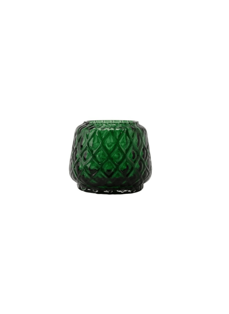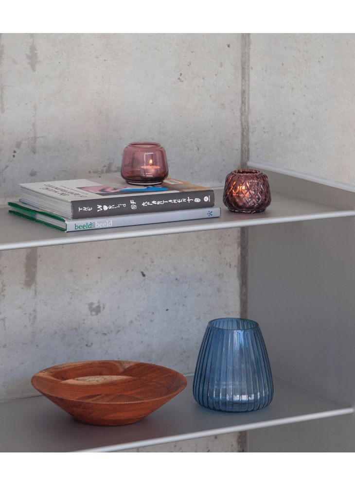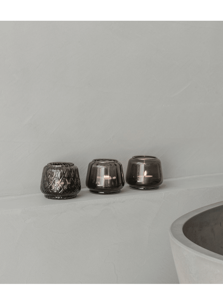 Deze theelichthouders vangen het licht in hun reliëfglas en creëren een warme sfeer. Even praktisch als stijlvol: ook leuk om te gebruiken als snoepkommetje of tapasschaaltje.