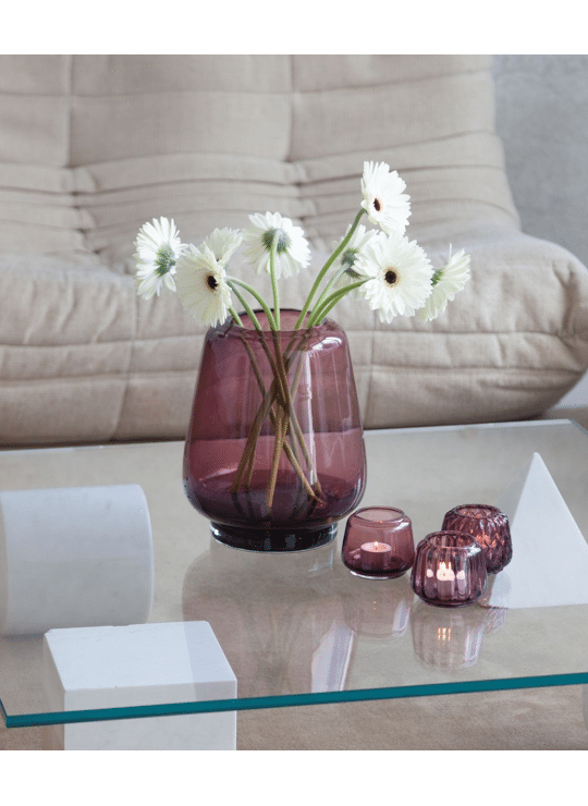 Met zijn gladde vorm en transparante kleuren straalt de vaas eenvoud en helderheid uit.