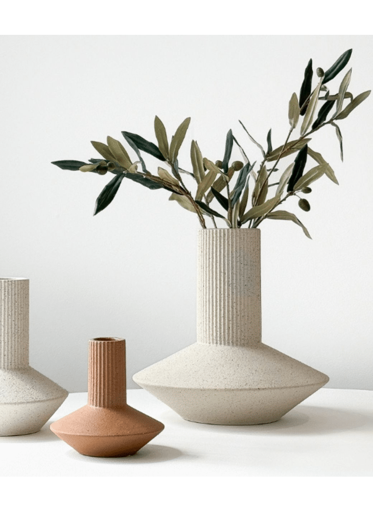 Deze vaas, ontworpen door Frederik Delbart voor XLBoom, is geïnspireerd op antieke amphora’s en historische zuilen. Zijn vorm en textuur geven een eigentijdse twist aan klassieke vormen. Vul met enkele bloemen, takken, of gebruik ze als decoratieobject.