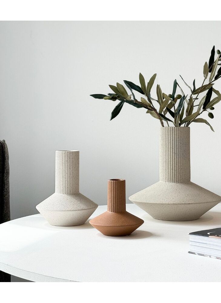 Deze vaas, ontworpen door Frederik Delbart voor XLBoom, is geïnspireerd op antieke amphora’s en historische zuilen. Zijn vorm en textuur geven een eigentijdse twist aan klassieke vormen. Vul met enkele bloemen, takken, of gebruik ze als decoratieobject.